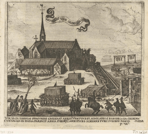 bestoarming en ynname fan it Aldekleaster en besocht sa gau mooglik mei soldaten it kleaster te ûntsetten. Dit slagge harren earst net, de werdopers joegen har ferset net op. Schenck liet it kleaster fjouwer kear bestoarmje en besjitte, mar de sterke muorre oan de westkant joech gjin belies. Doe’t ien fan de mountsen fan it kleaster Schenck de ried joech it kanon op de noardkant fan de tsjerke te rjochtsjen, siet der samar in gat yn de kleaster-muorre. De werdopers ferdigenen harren fûl, mar se koene it net mear hâlde. Op 7 april joegen de lêsten harren oer. Der wiene sawat 100 manlju en froulju sneuvele. Schenck liet fuort-en-daliks 24 werdopers ophingje, 15 waarden ûnthalze. In 150 manlju en froulju waarden nei Ljouwert brocht, elts dy’t him of har net bekeare liet krige de deastraf, manlju ûnthalze en froulju yn in sek bun en ferdronken. Nei de skea waard alles ferholpen en it kleasterlibben koe wer fuortset wurde.